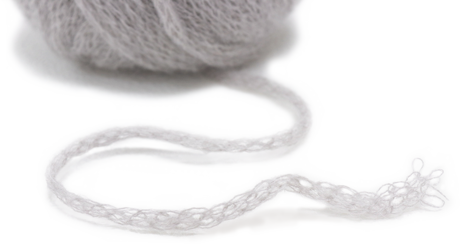 撚り合わせて糸にして、編み合わせて編み物にした。